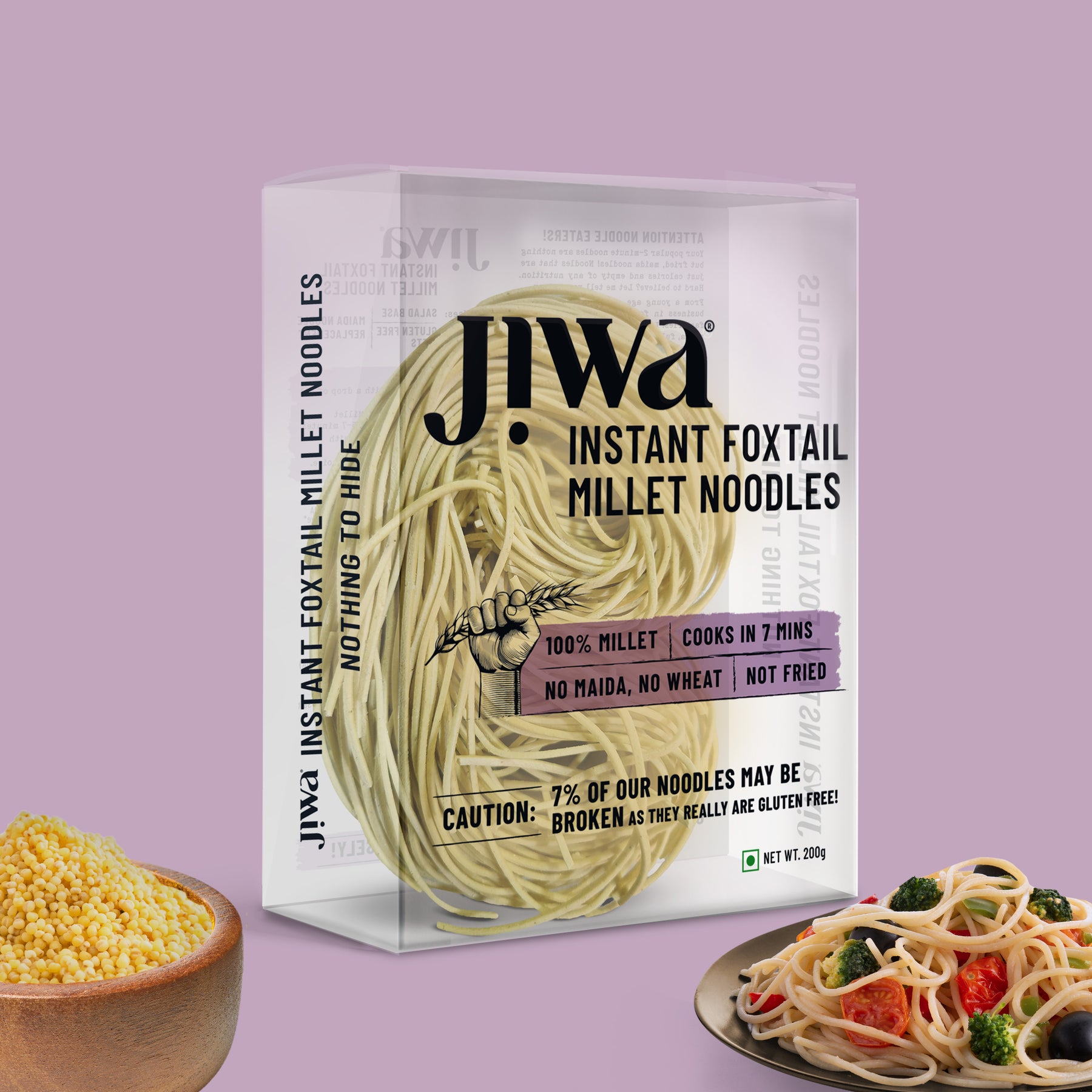 Get the noodles, leave the junk. Hard to believe? Make a switch to 'Jiwa Instant Foxtail Millet Noodles!' Made with our signature cold pressed foxtail millet flour, this hand cut millet noodle is not fried & ready in less than 7 minutes! Use to make hakka noodles or a delicious Italian spaghetti we promise you’ll slurp up every last bite!