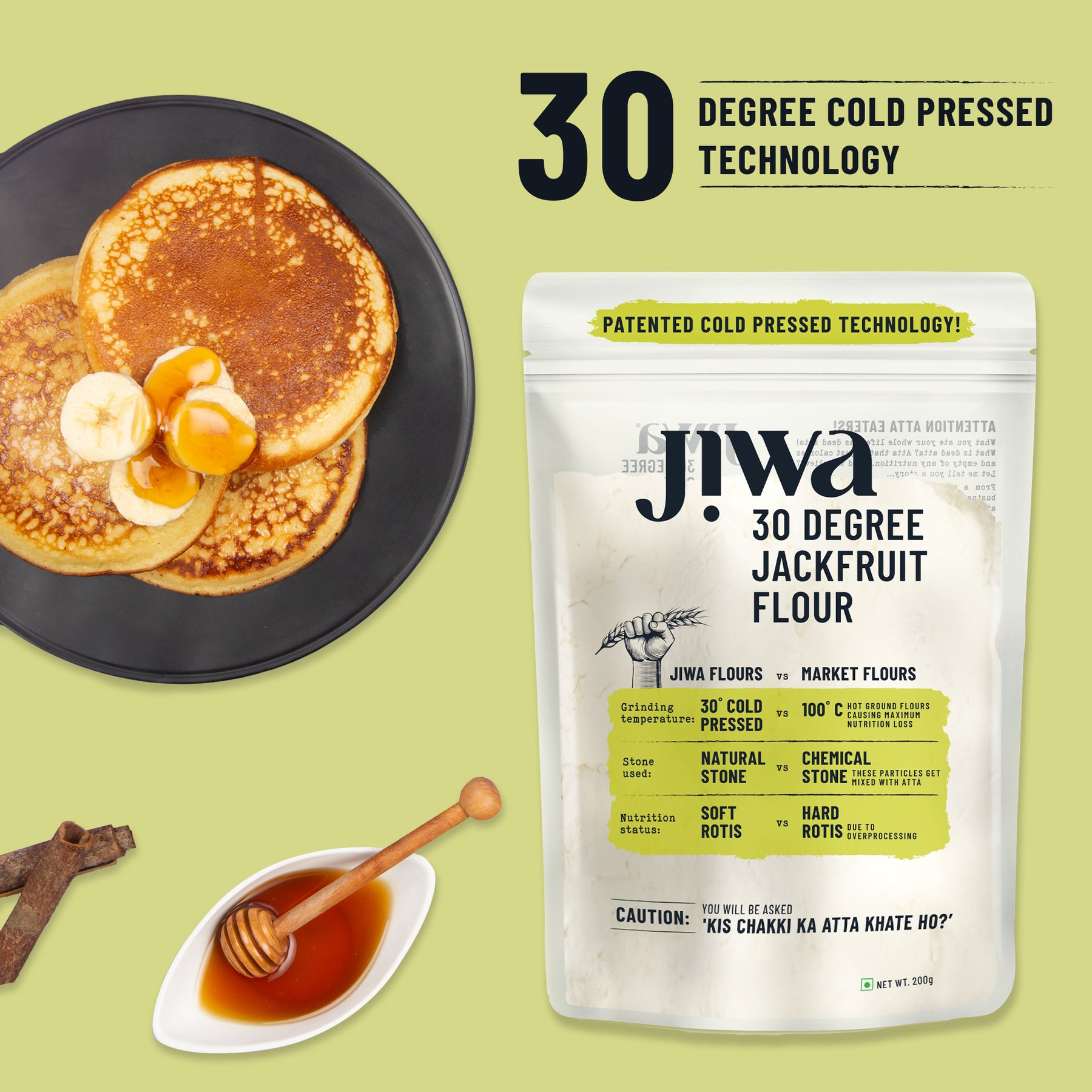 Experience the natural goodness of Jiwa 30 Degree Jackfruit Flour, crafted from 100% raw, unripe jackfruit and cold pressed at 30°C to retain its rich nutritional value. This gluten-free flour is a wholesome choice for those seeking better blood sugar control, improved digestion, and clean, plant-based nutrition. Cold processing ensures that vital nutrients and fiber remain intact, making it an ideal addition to your daily meals. With its mild taste and smooth texture, Jiwa 30 Degree Jackfruit Flour can be used on its own or blended with other flours to prepare rotis, dosas, pancakes, or even baked goods.